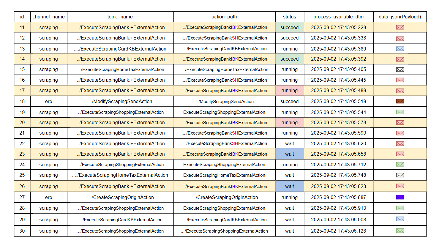 ๊ตญ๋ฏผ ๊ฐ์ธ ์นด๋ ์์ง์ ์์๋ก ๋ค์์ ๋, Scraping ๊ฒฐ๊ณผ๊ฐ 25๊ฑด๋ง ๋์ด๋ Kafka ๋ฐฉ์์์๋ ๋ค์ ๋จ๊ณ ๋ฉ์์ง payload๊ฐ 11,000 bytes๊น์ง ์ฆ๊ฐํ์ต๋๋ค.