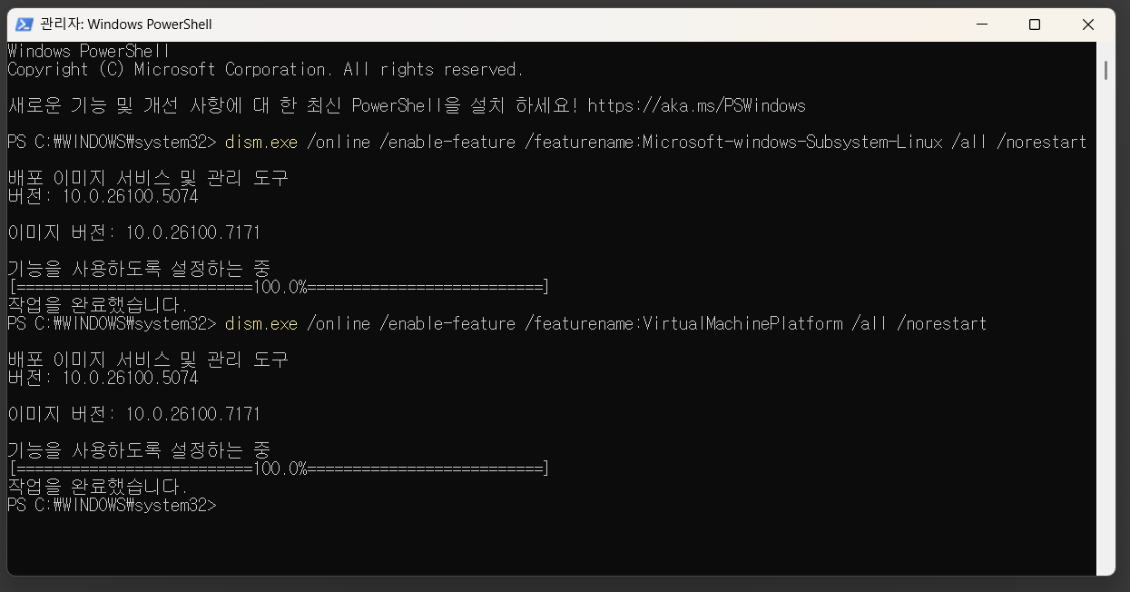 μ€ κΈ°λ°μ μ€ν νκ²½μ λ¨Όμ ꡬμ±ν΄μΌ ν©λλ€. μ΄λ₯Ό μν΄ WSL2(Windows Subsystem for Linux)λ₯Ό μ€μΉνκ³ , Ubuntu λ°°ν¬νμ ν¨κ» ꡬμ±νμ΅λλ€. μ΄ν Ubuntu ν°λ―Έλμμ νμν ν¨ν€μ§λ₯Ό μ€μΉνκ³ μ