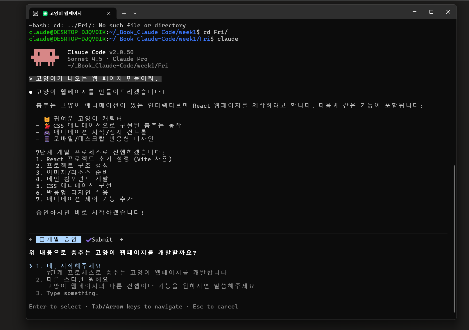κ³ μμ΄κ° λμ€λ μΉ νμ΄μ§λ₯Ό λ§λ€μ΄ λ¬λΌκ³ λ§ νλλ°λ, ν΄λ‘λ μ½λκ° κ°κ°μ ꡬν λ¨κ³λ₯Ό κΈ°ννκ³ , μ¬μ©μμ μνΈμμ©μ νλ©° μΉ κ°λ°μ ν©λλ€.