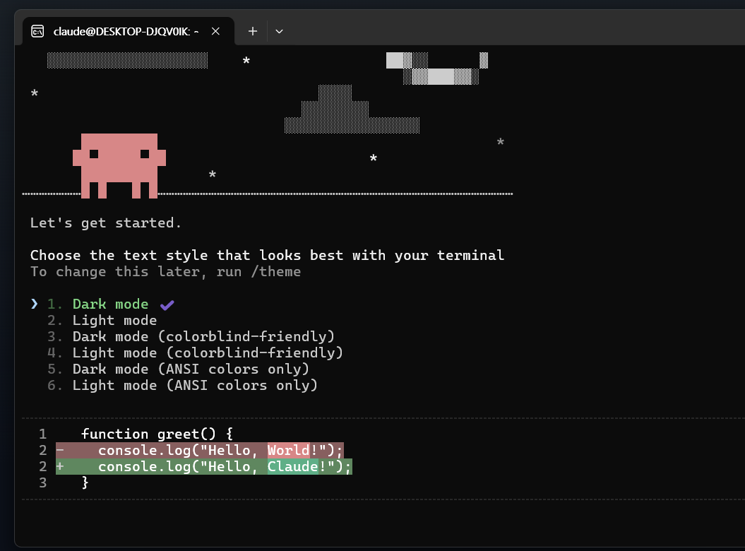κ³μ κ°μ κ³Ό ꡬλ κΉμ§ μλ£ νλ€λ©΄ λ€μκ³Ό κ°μ΄ claude λͺ λ Ήμ΄λ₯Ό ν΅ν΄ claude codeλ₯Ό μ€ν ν μ μμ΅λλ€.