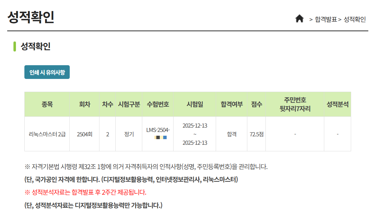 ๐ง ๋ฆฌ๋ ์ค ๋ง์คํฐ 2๊ธ ํฉ๊ฒฉ ํ๊ธฐ (2504ํ)