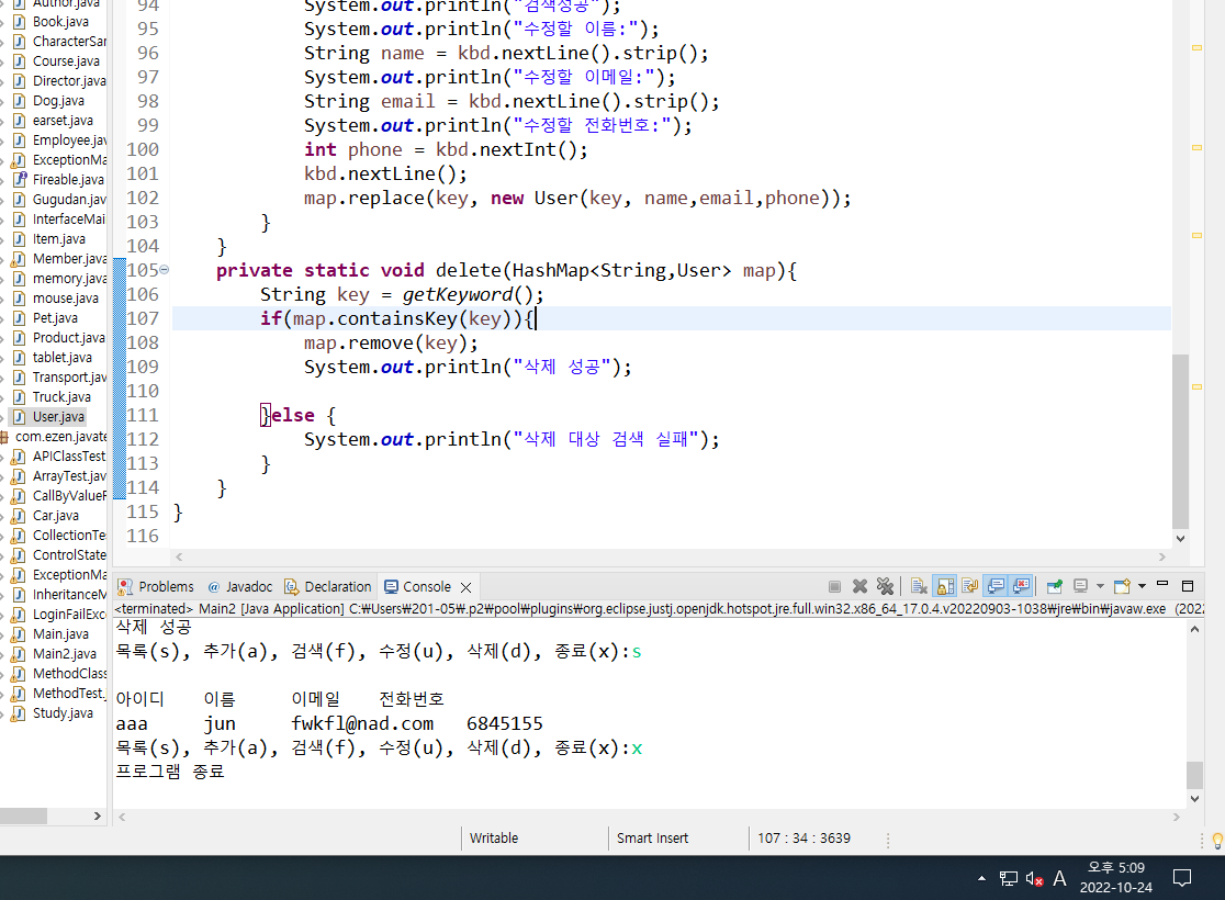 System.out.println("์ญ์ ์ฑ๊ณต");