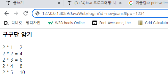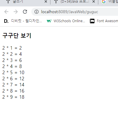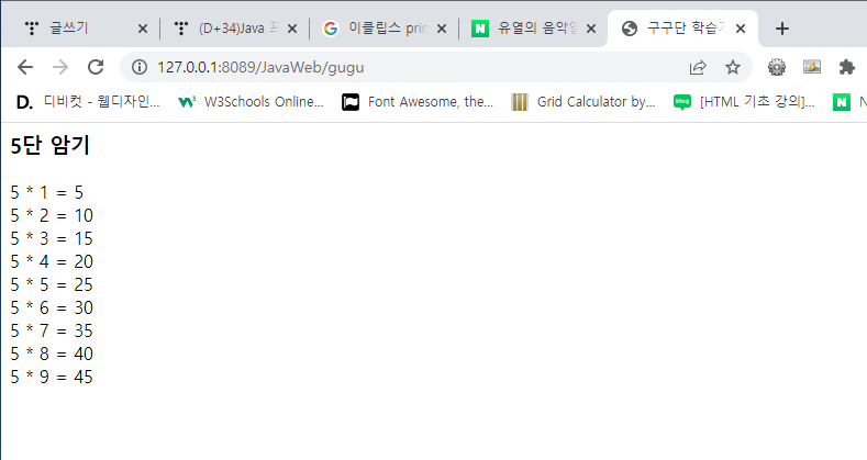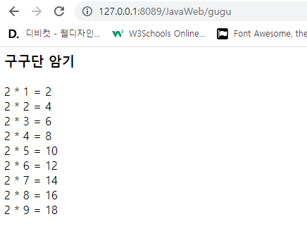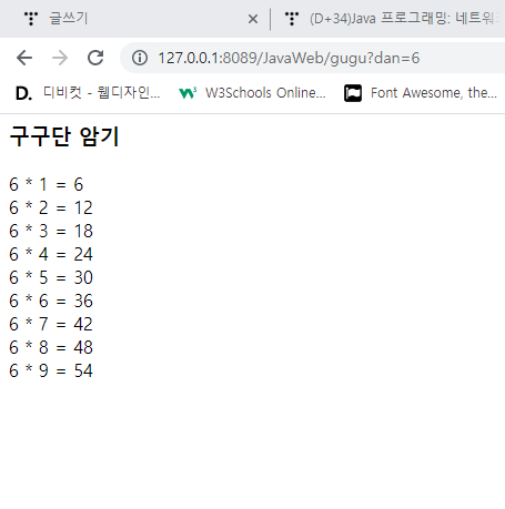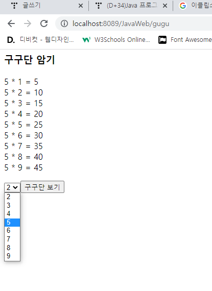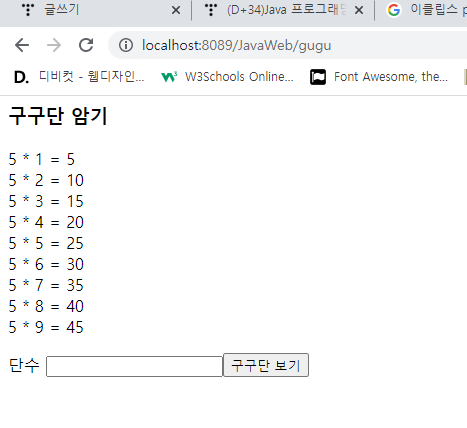 GuguServlet์ ์์ฑํ๊ณ ๊ตฌ๊ตฌ๋จ 5๋จ์ ํ๋ฉด์ ํ์ํด ๋ณด๋ผ