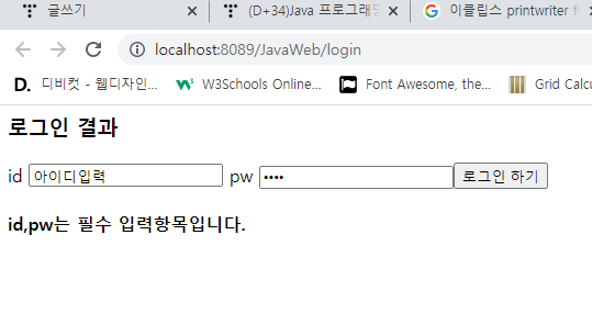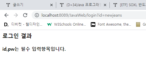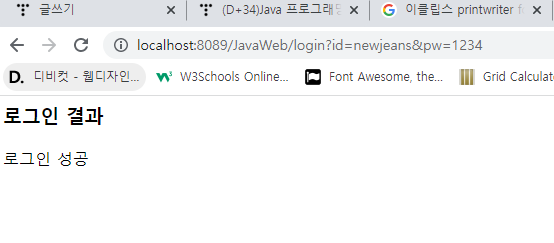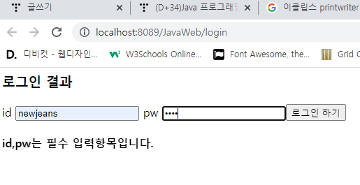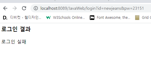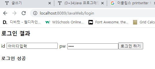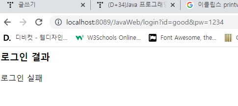 get ๋ฐฉ์ ์์ฒญ์ ์ฌ์ฉํ์ฌ id,pw๋ฅผ ์ ๋ฌํ๋ฉด ์๋ธ๋ฆฟ์์ ์ธ์ฆํ์ฌ ๊ทธ ๊ฒฐ๊ณผ๋ฅผ ๋ก๊ทธ์ธ ์ฑ๊ณต/์คํจ๋ฅผ ํ๋ฉด์ ํ์ํ์์ค
