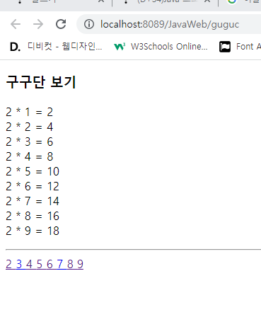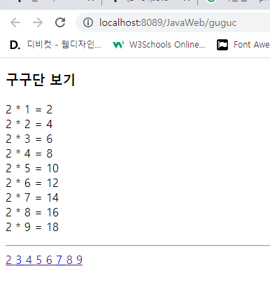 gugu.jsp์์ 2~9๊น์ง ๋งํฌ๋ฅผ ์์ฑํ์ฌ ํด๋ฆญํ๋ฉด ํด๋น ๊ตฌ๊ตฌ๋จ์ด ๋์ค๊ฒ ๋ง๋ค๊ธฐ