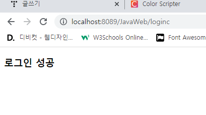 ์๋ธ๋ฆฟ์ ์ฃผ์๋ก jspํ์ผ์ด ์ฐ๋๋์ด ํ๋ฉด์ ๋ณด์ฌ์ง๋ค.