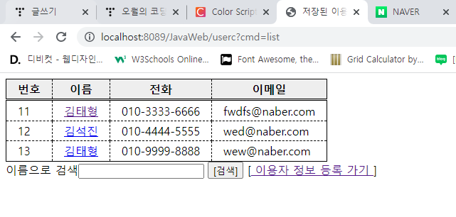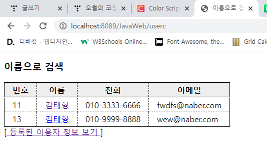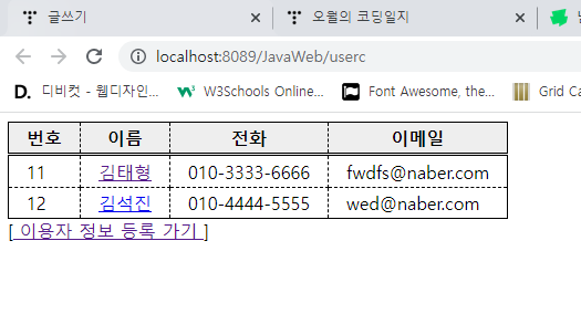 [<a href="userc?cmd=list"> ๋ฑ๋ก๋ ์ด์ฉ์ ์ ๋ณด ๋ณด๊ธฐ </a>]