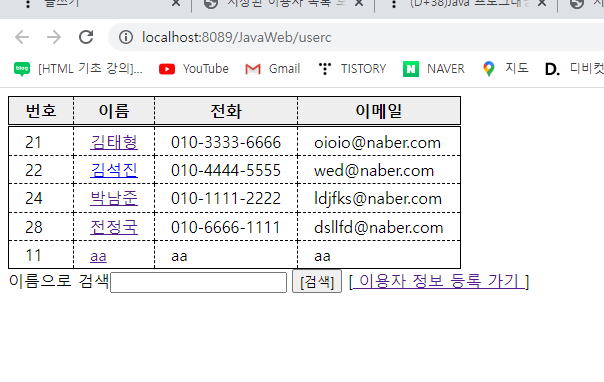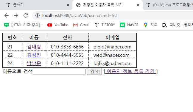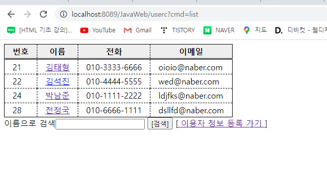 [<a href="userc?cmd=list"> ๋ฑ๋ก๋ ์ด์ฉ์ ์ ๋ณด ๋ณด๊ธฐ </a>]