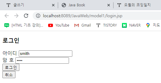 ์์ฃผ ๊ฐ๋จํ ๋ก๊ทธ์ธ์ฐฝ์ ๋ง๋ค์ด์ ๋ก๊ทธ์ธ์ด ์ฑ๊ณตํ๋ฉด ์ฑ๊ณตํ ์ฌ๋๋ค๋ง main.jsp์ ์ ์ ๊ฐ๋ฅํ๊ฒ ํ๊ณ ,