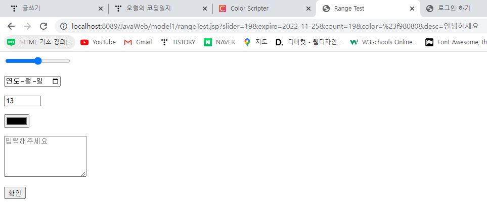 ํ์ธ ๋ฒํผ ๋๋ฅด๋ฉด ์ค์ ํ ๊ฐ๋ค์ด url์ ํ์๋์ฌ ๋์ด ๊ฐ๋ค.