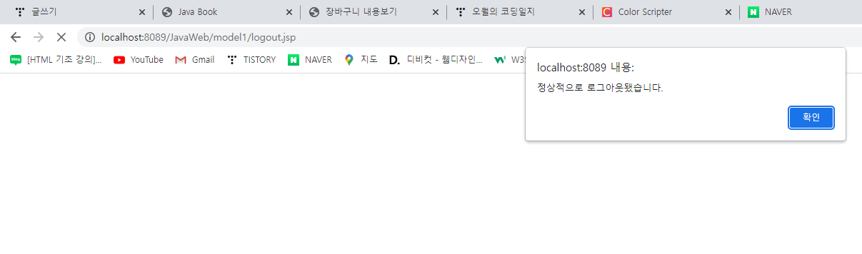 alert("์ ์์ ์ผ๋ก ๋ก๊ทธ์์๋์ต๋๋ค.");
