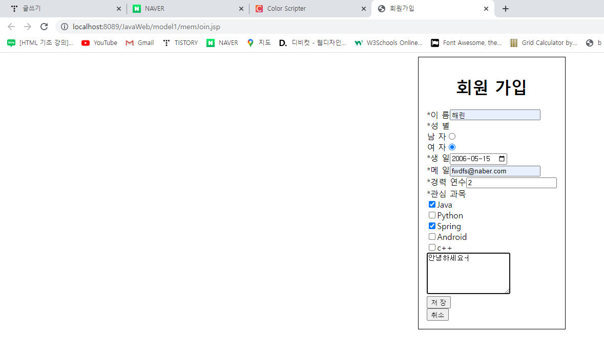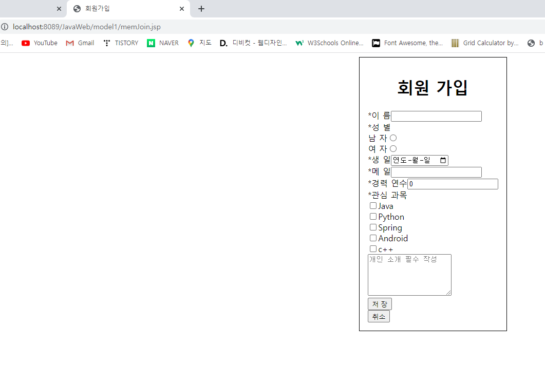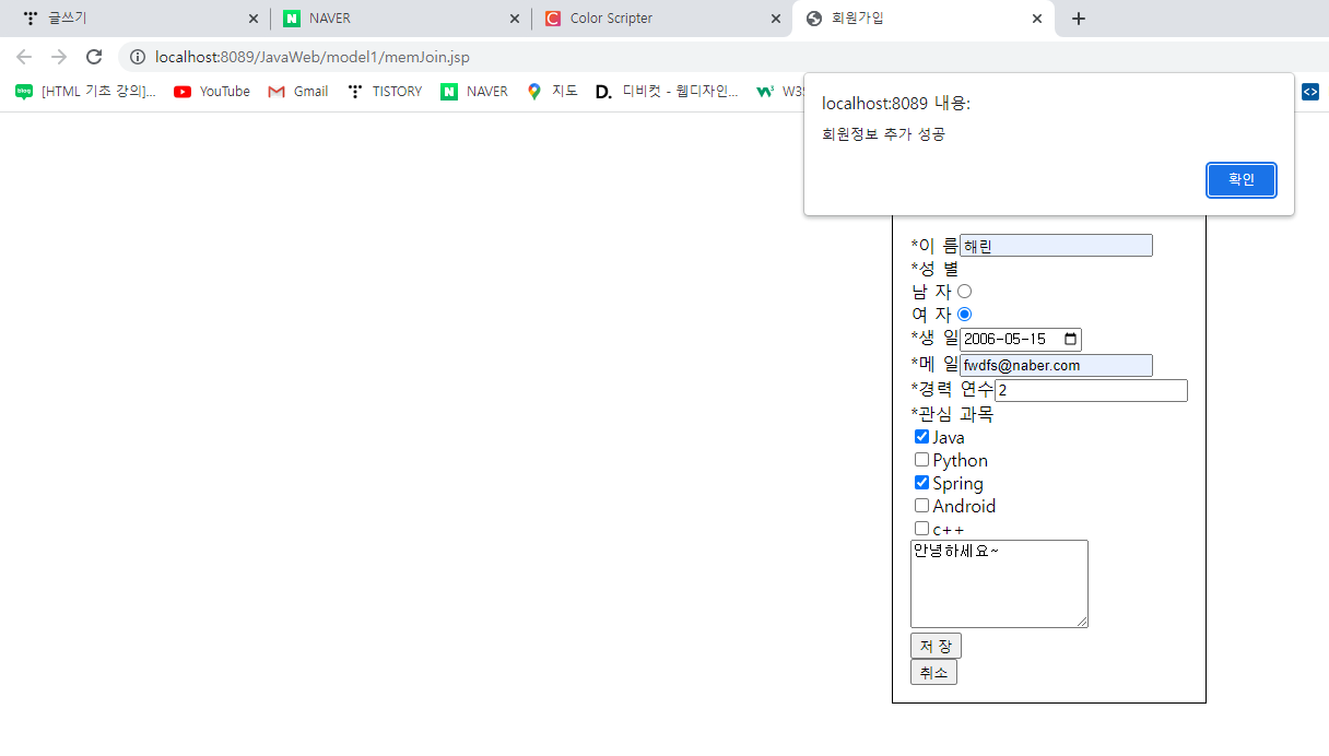 ํ์ ๊ฐ์ ๋ฑ๋ก ํผ ๋ฐ ์ฒ๋ฆฌ (memJoin.jsp, joinProc.jsp, Member, MemService.java)