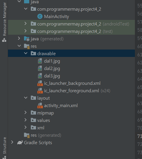 ์ฌ์ง์ ๋ณต์ฌ ํ์ฌ [res]-[drawable]์ ๋ถ์ด ๋ฃ๊ธฐ ํด์ค๋ค.