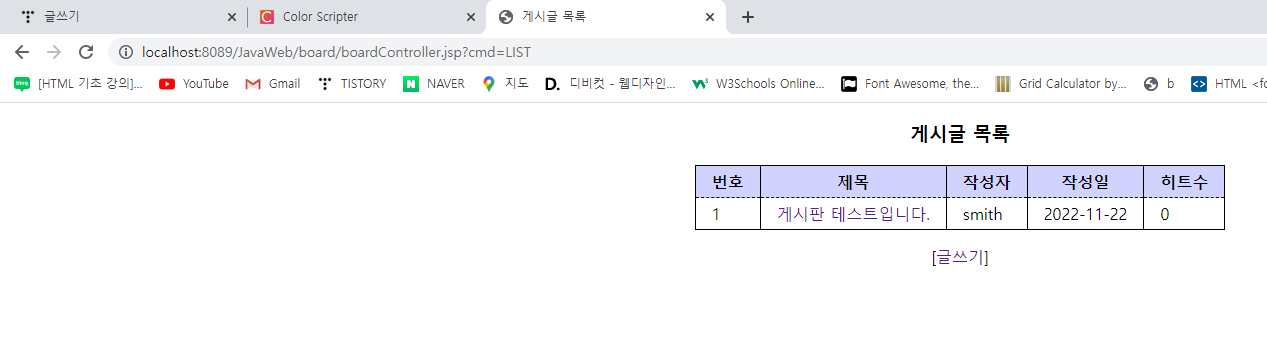 [<a href="boardController.jsp?cmd=ADD_FORM">๊ธ์ฐ๊ธฐ</a>]