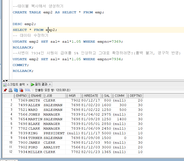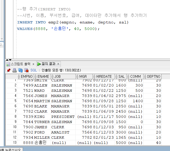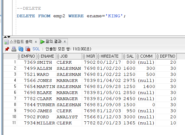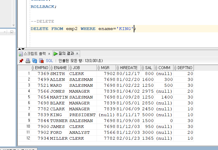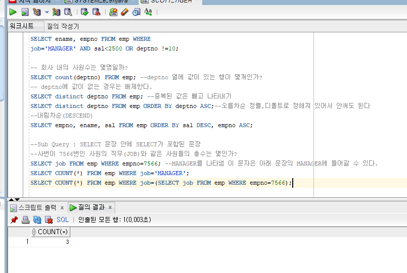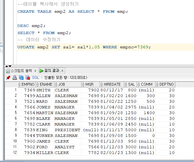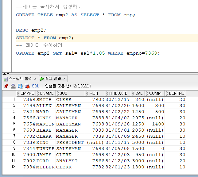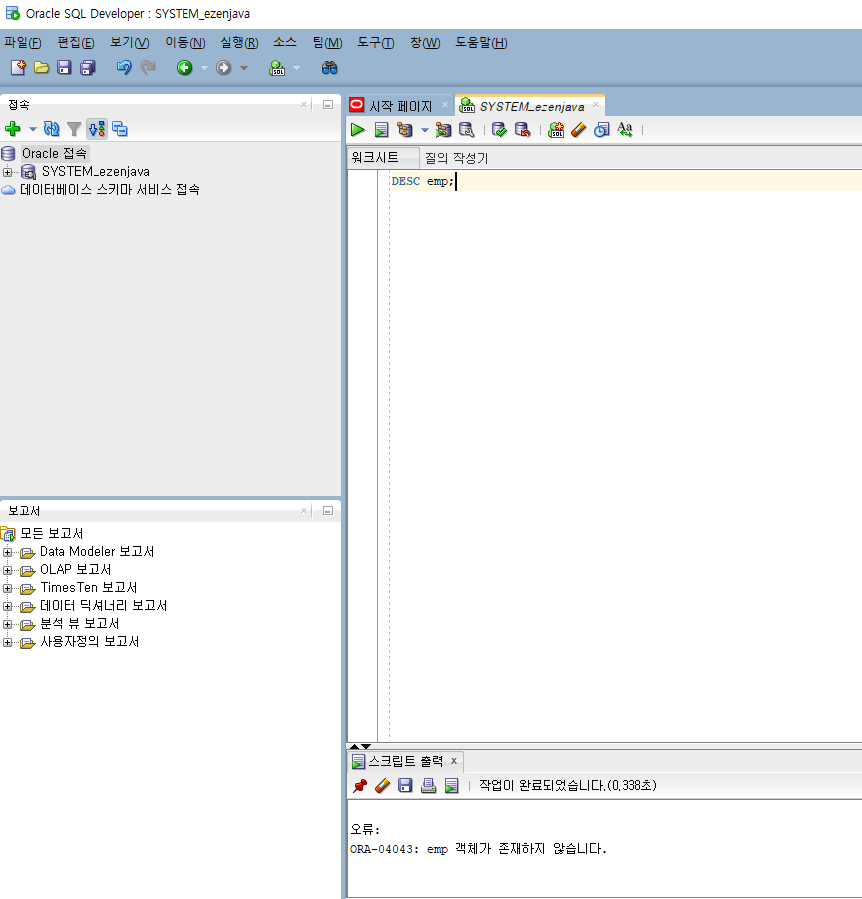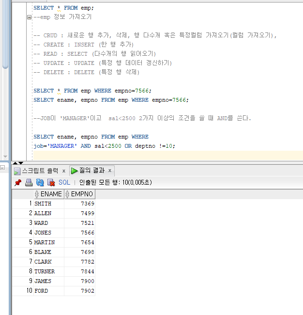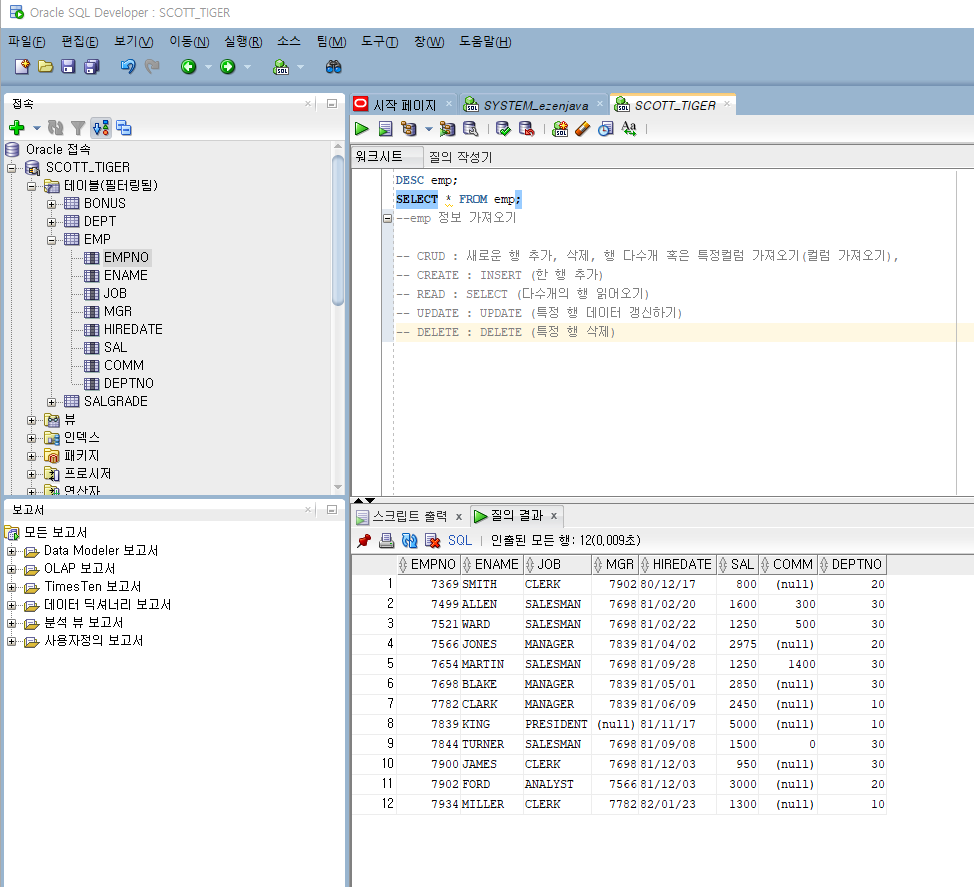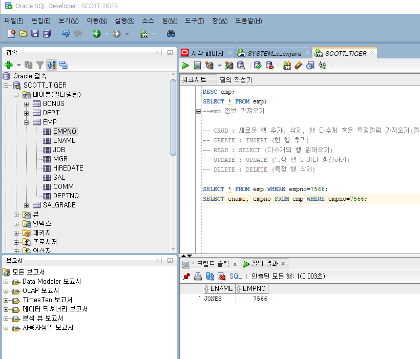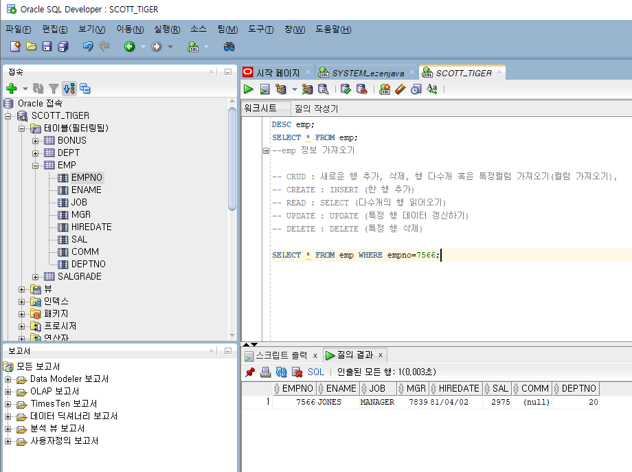sqldeveloper์์ scott ๊ณ์ ์ผ๋ก emp ๊ฐ์ฒด ์ค๋ช ๋ณด๊ธฐ