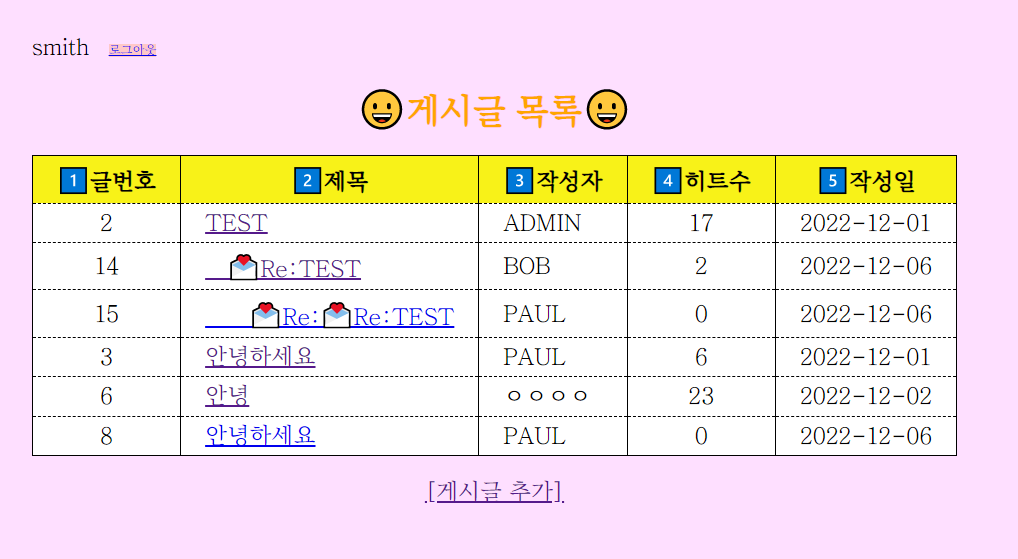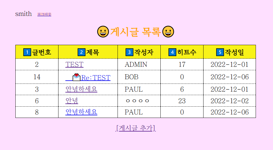 <a href="DBBoard?cmd=list">[๊ฒ์๊ธ ๋ชฉ๋ก๊ฐ๊ธฐ]</a>