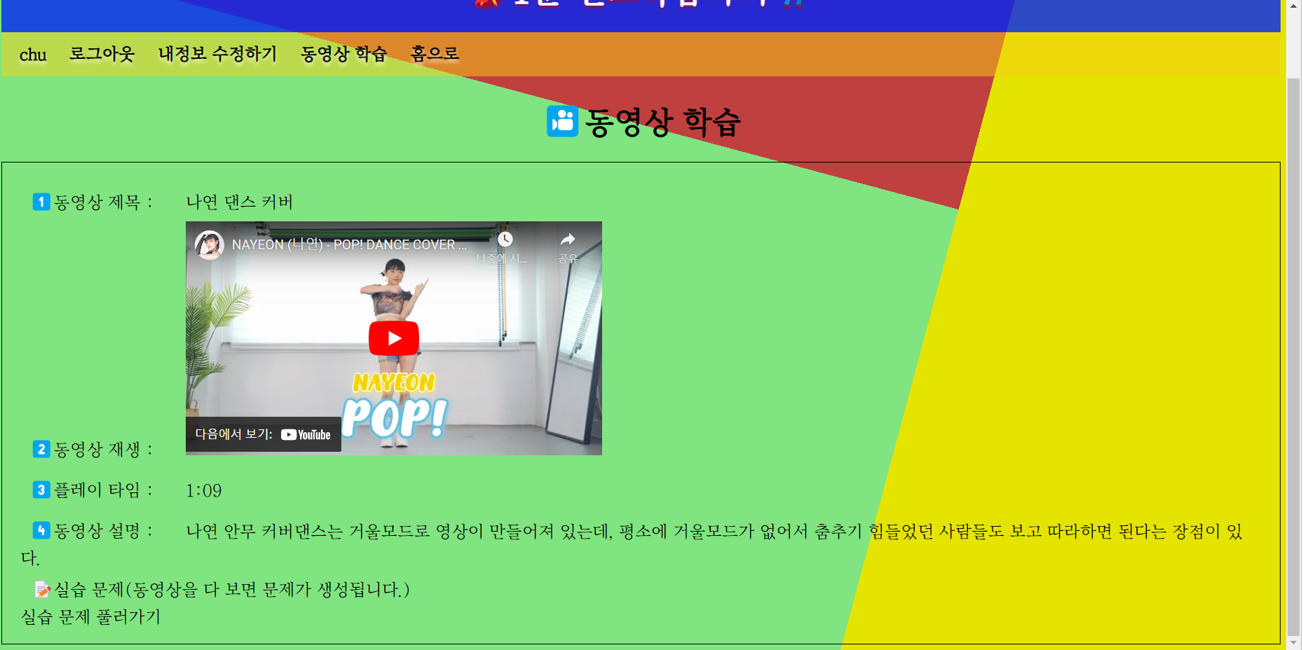 <div id='practice'><a href='lms?cmd=practice&level=${video.lvl_code}'>μ€μ΅ λ¬Έμ νλ¬κ°κΈ°</a></div>