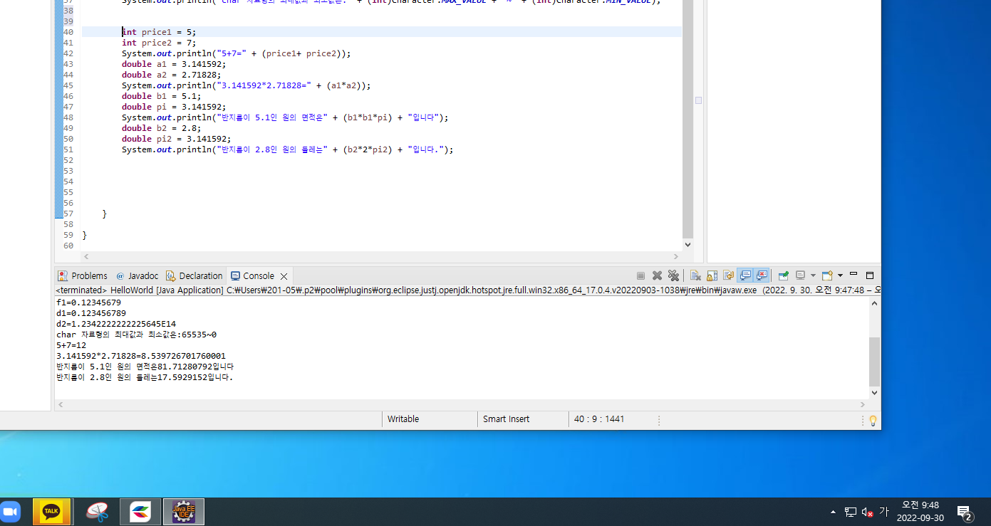 ๋ณ์ double๋ฅผ ์ด์ฉํ์ฌ ๊ฐ๋จํ ์ฐ์ ๋ฌธ์ ๋ฅผ ํด๊ฒฐํ์๋ค.