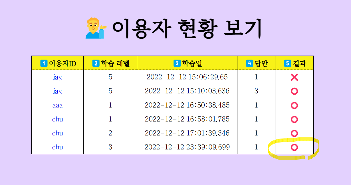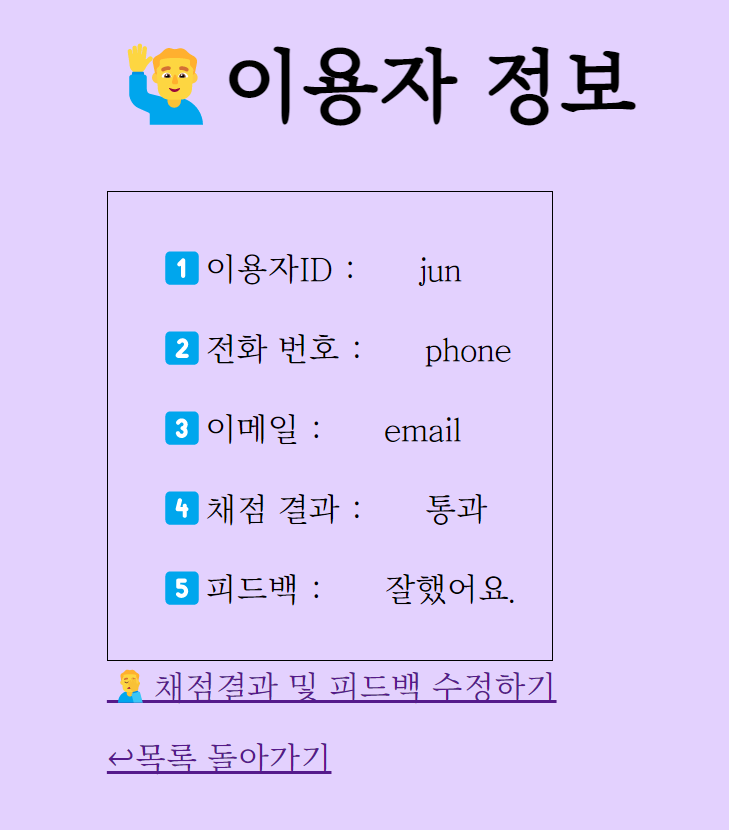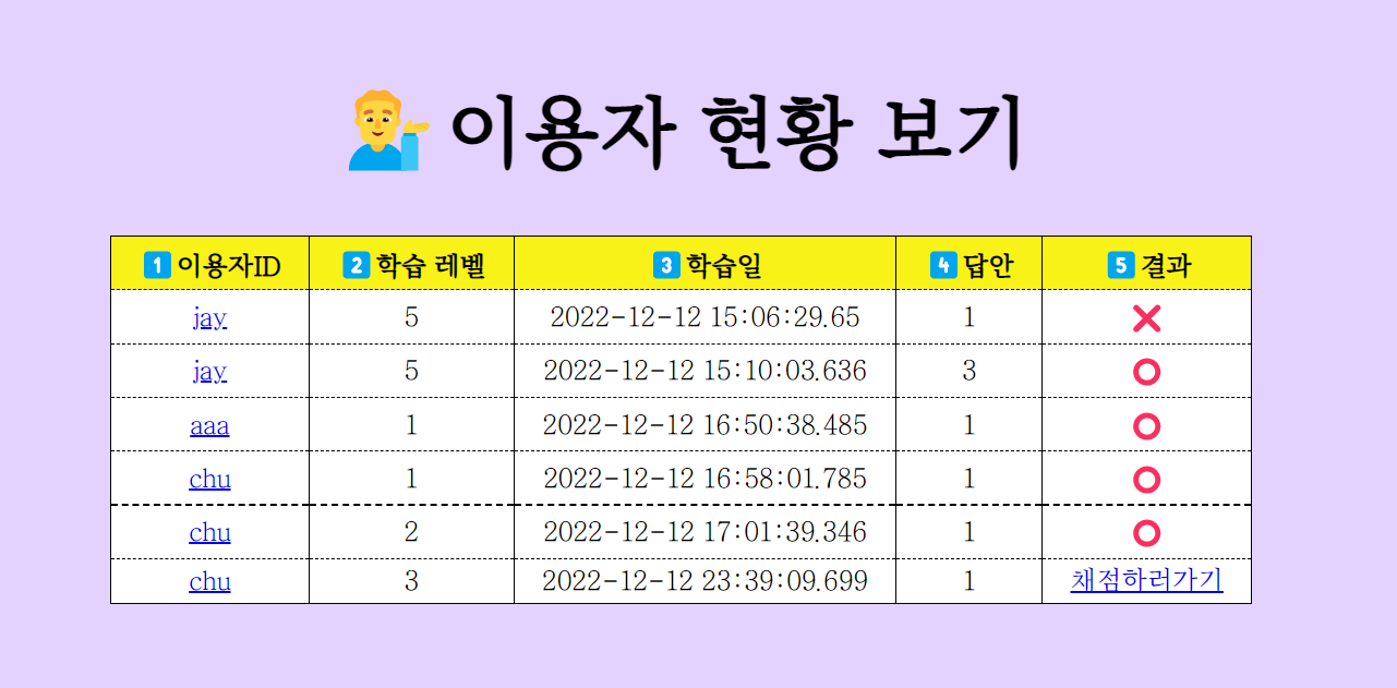 ์ด์ฉ์์ ์ ๋ณด๋ฅผ ๋ณด๊ฑฐ๋ ์ฑ์ ๊ฒฐ๊ณผ ๋ฐ ์ง๋๋ด์ฉ์ ์์ ํ๊ธฐ ์ํ ํ์ด์ง