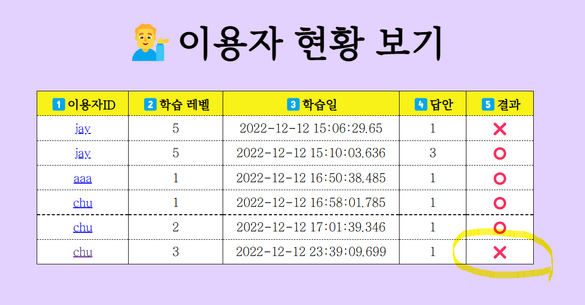 ์ด์ฉ์๊ฐ ๋ฌธ์ ๋ฅผ ํผ ๊ฒฐ๊ณผ๋ฅผ ๋ฐ์ ์ฑ์ ์ ํ๊ณ ๋ค์ ํ์ต์ ํ ์ ์๊ฒ ํด์ค๋ค.