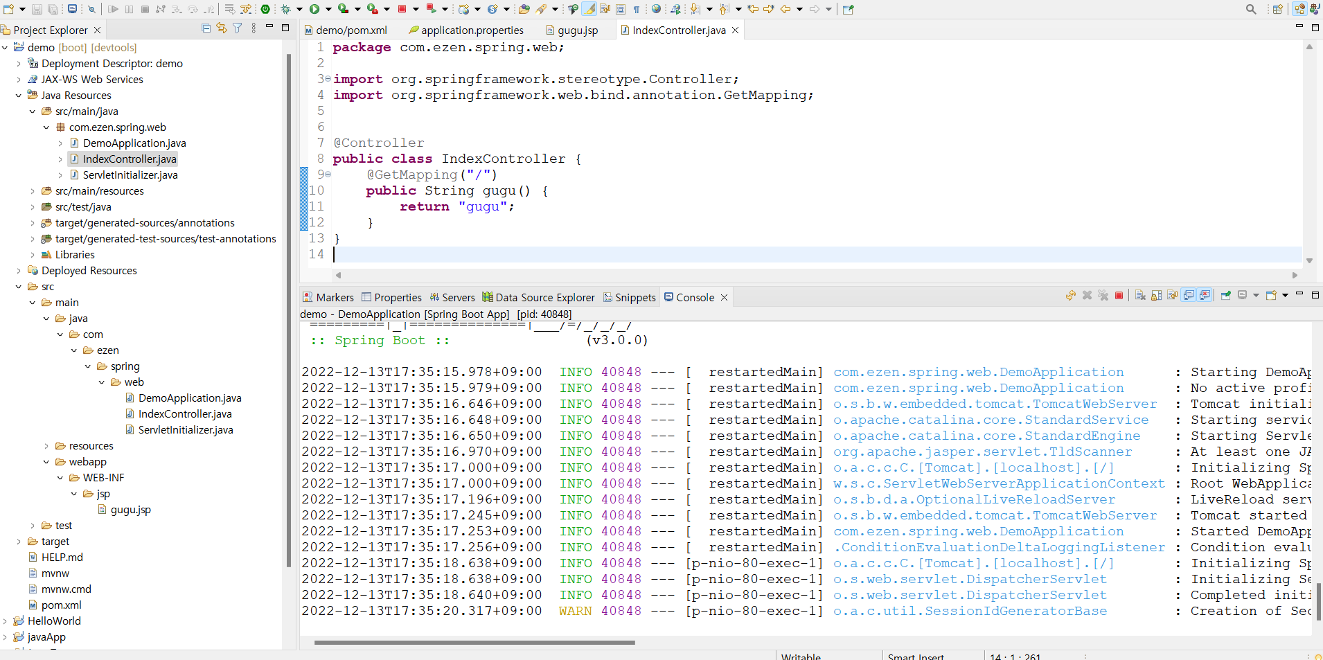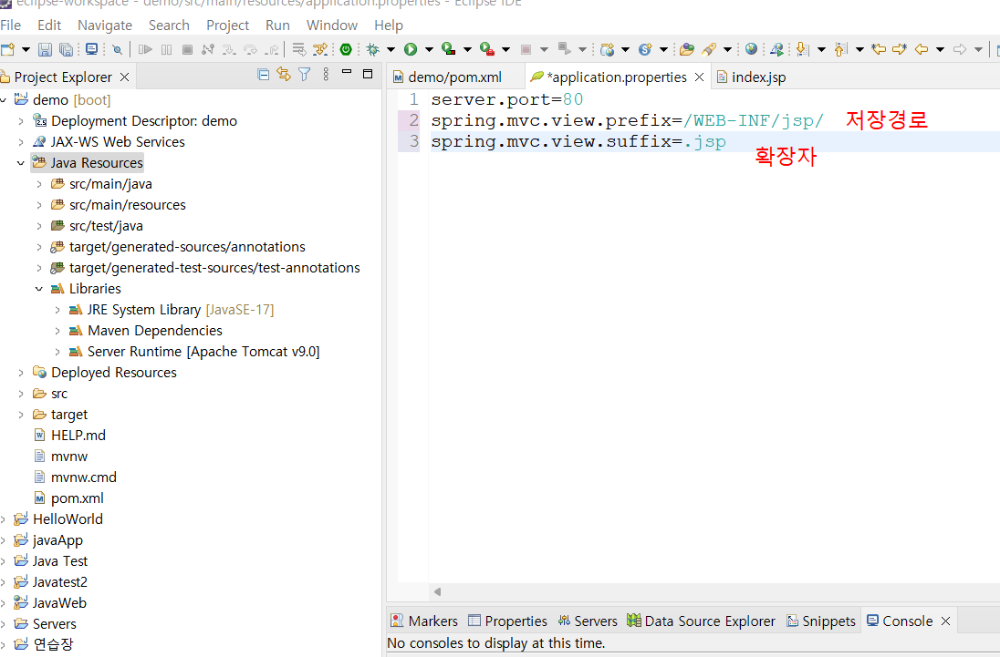 application.propertie๋ฅผ ์์ ํด์ค์ jspํ์ผ ์ ๊ฒฝ๋ก์ ํ์ฅ์๋ฅผ ์ฃผ์ด ์๋ต ๊ฐ๋ฅํ๊ฒ ํ๋ค.