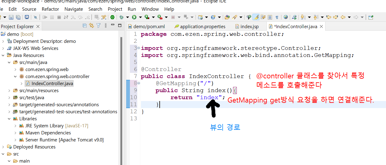 -Controller ์ปดํฌ๋ํธ : ์๋ธ๋ฆฟ์ด ์๋ ์ปจํธ๋กค๋ฌ๋ฅผ ์์ฑํ๊ฒ ๋๋ค. (์๋ธ๋ฆฟ์ ์คํ๋ง์์ ์ง์)