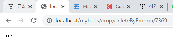 * @GetMapping("/deleteByEmpno") ์ฃผ์์ฐฝ์ /mybatis/emp/deleteByEmpno?empno=7369
