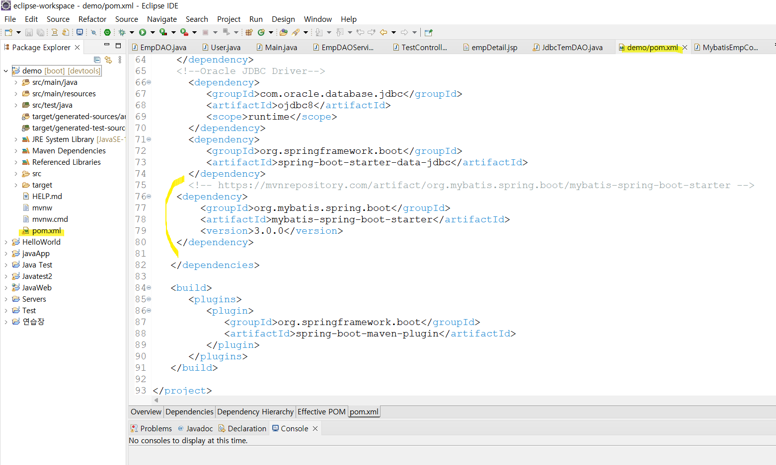 MyBatis๋ฅผ ์ฐ๊ธธ ์ํด์ Maven Repository ์์ dependency๋ฅผ ๋ค์ด ๋ฐ์ pom.xml์ ์ค์ ํด์ค์ผํ๋ค.