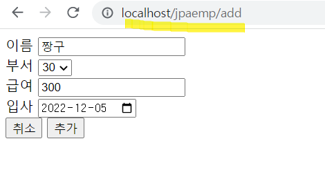 <form action="/jpaemp/add" method="post" >
