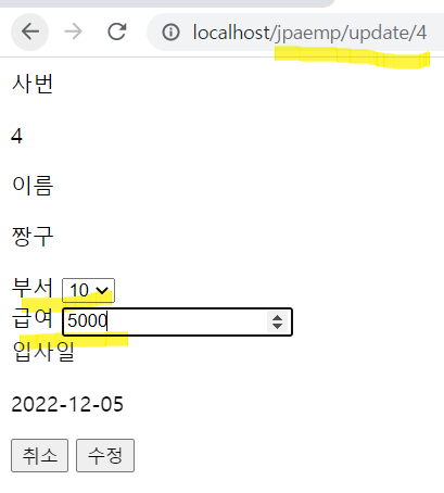 <form action="/jpaemp/edit" method="post" >