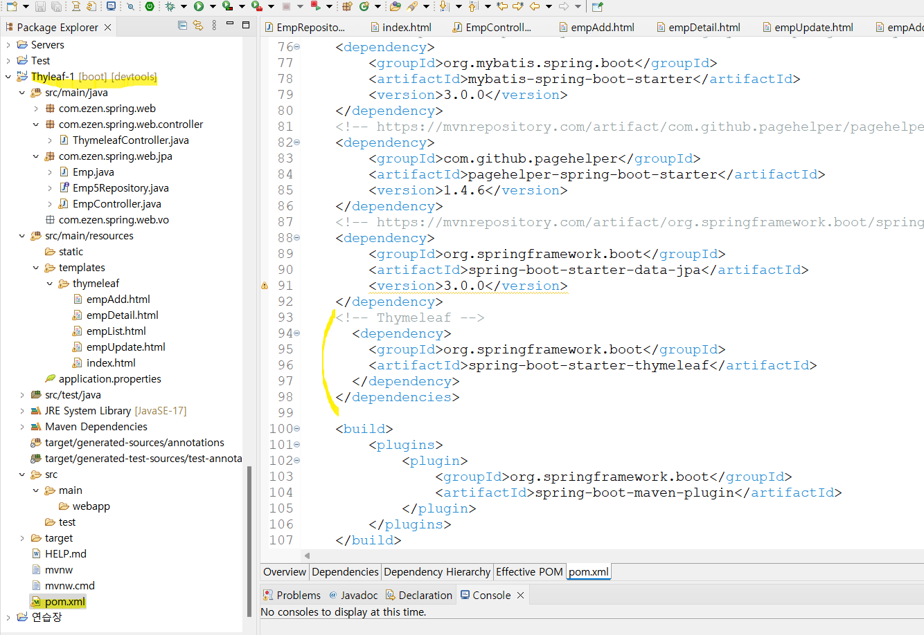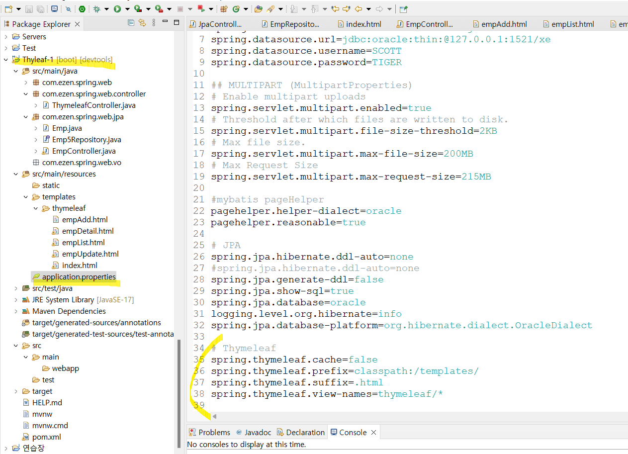 3. application.properties, pom.xml์ thumeleaf ๊ด๋ จ ์ค์ ์ถ๊ฐ