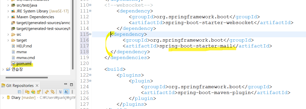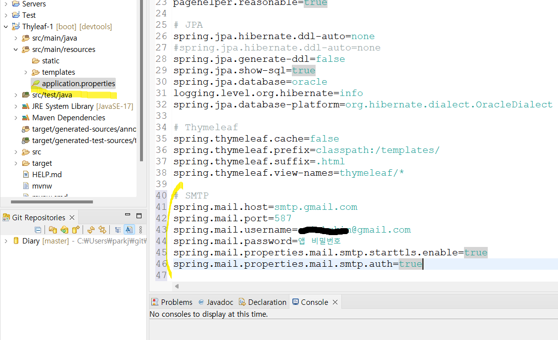 - ๋ณต์ฌ๋ ๋น๋ฐ๋ฒํธ๋ฅผ application.properties์ ์