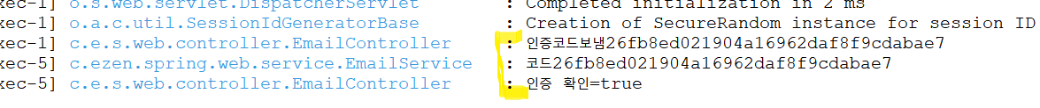 log.info("์ธ์ฆ์ฝ๋๋ณด๋"+mailresult.get("code"));