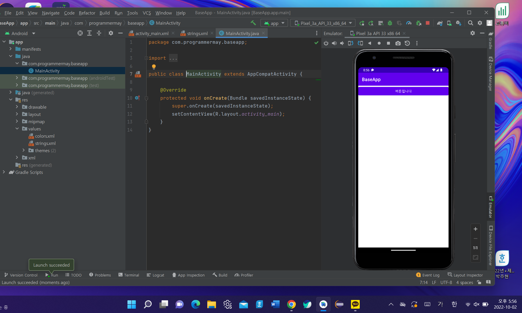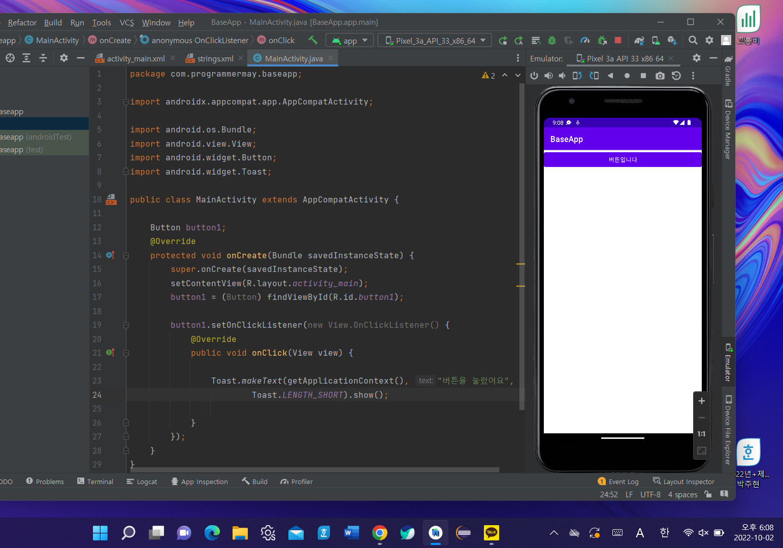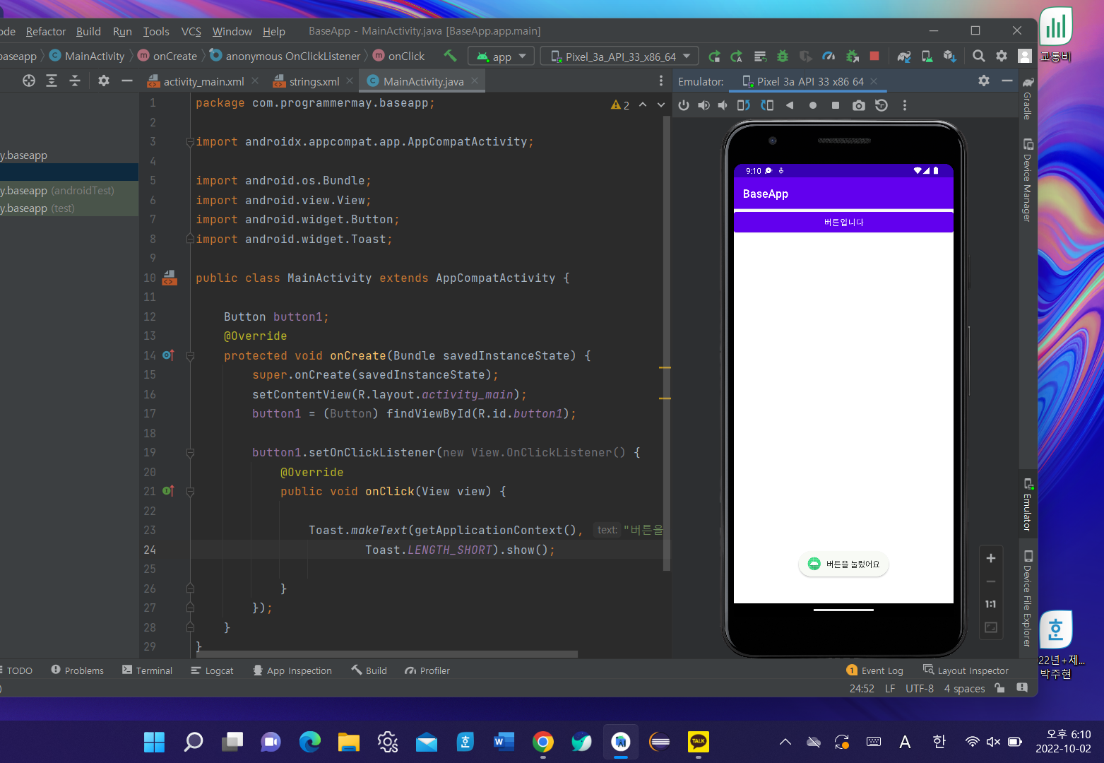 μ΄μ MainActivity.java μ μ½λλ₯Ό μ€μ νμ¬ μλνκ² λ νλ€.