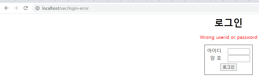 .failureUrl("/sec/login-error") // ๋ก๊ทธ์ธ ์คํจ์ ๋ค์ ๋ก๊ทธ์ธ ํผ์ผ๋ก