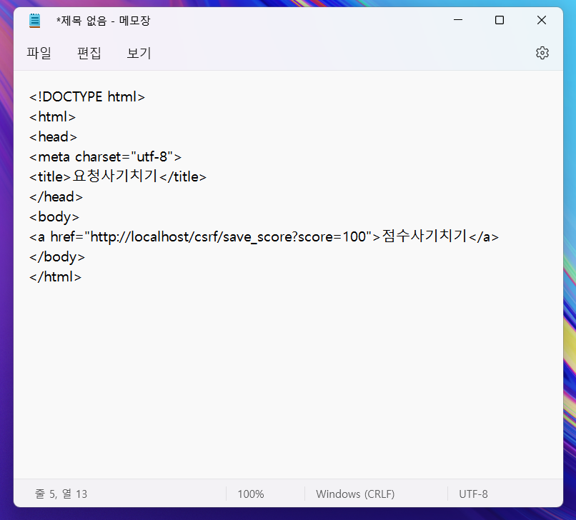 ์๋ชป๋ ์์ฒญ์ ๋ณด๋ด๊ธฐ ์ํด ๋ง๋ html